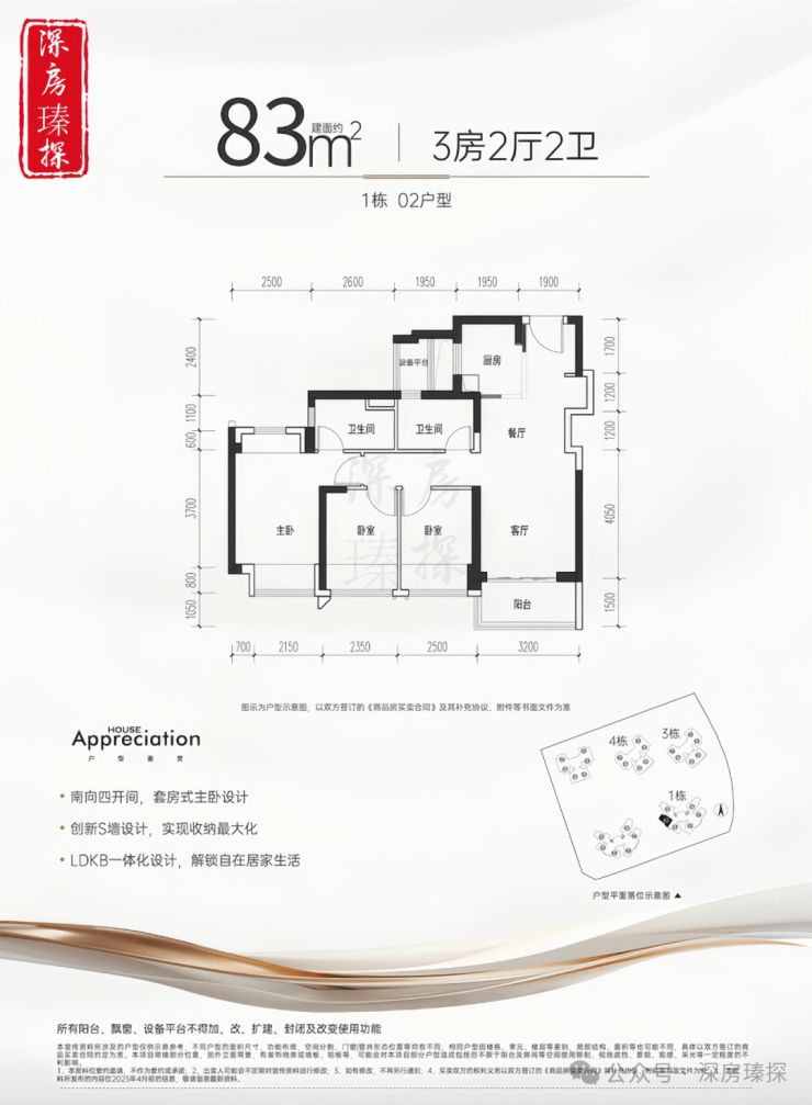 83㎡的3房2厅2卫,折后总价324-363万/套,单价3.83-4.36万/㎡。