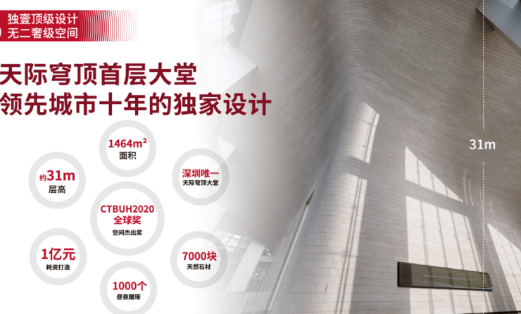 大堂高度:30.9米穹顶大堂,深圳最高的大堂!