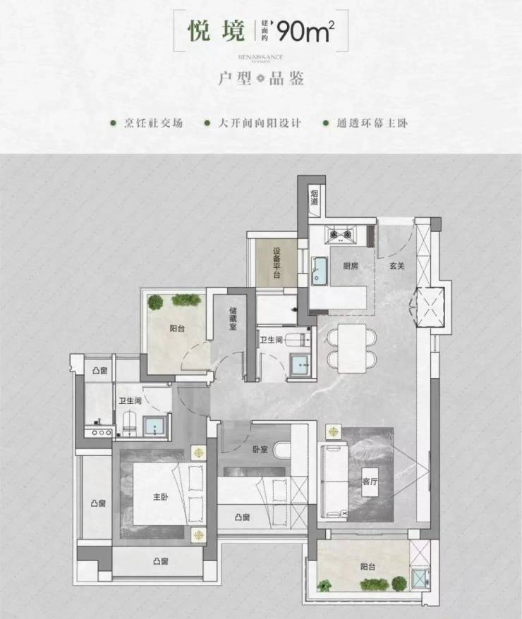 项目户型采用新规设计,含赠送的使用率约96%,比新规前没赠送面积的常规户型使用率更高,这又是很多人捧它的一点。