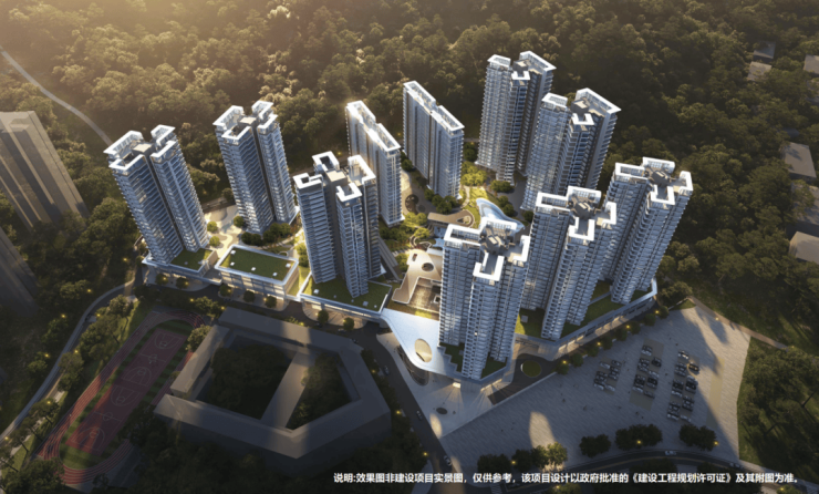 项目占地面积约42407.29㎡,总建筑面积约16.3万㎡,包含商品住宅约10万㎡、配套商业约6000㎡以及少量公区配套。