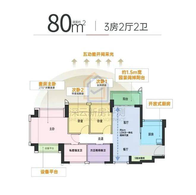 大主卧270度环幕采光,3面环景通透舒适