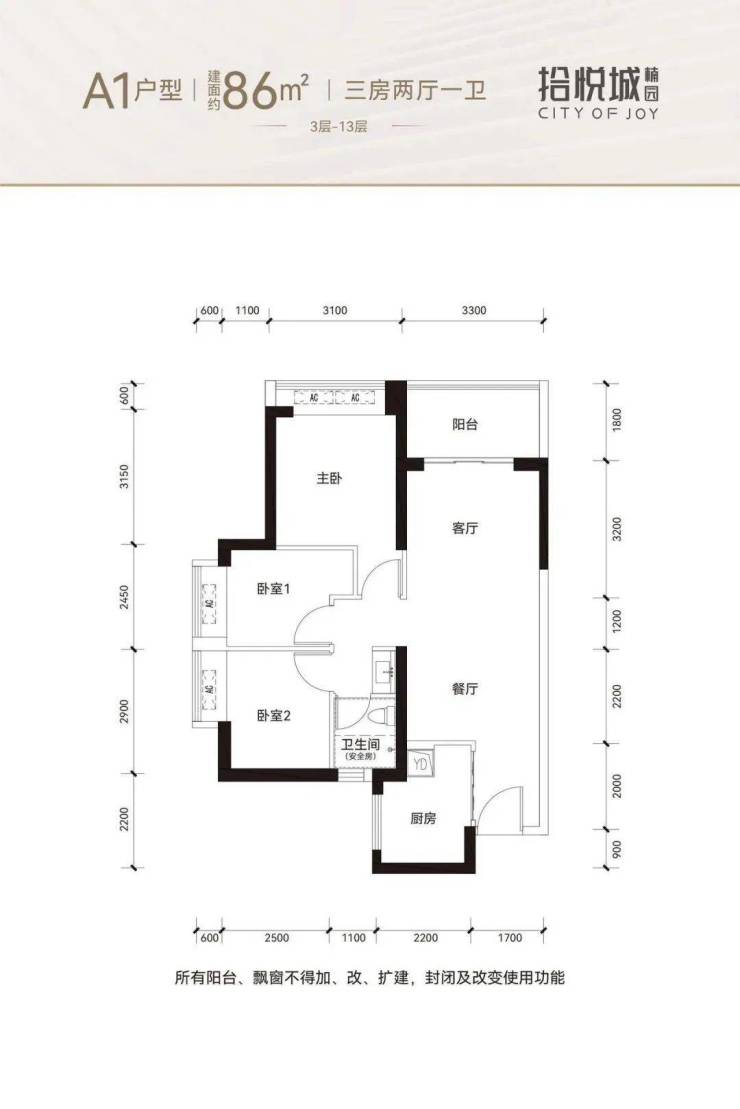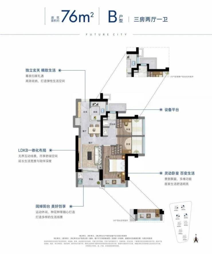 A户型78-80㎡3房1卫: