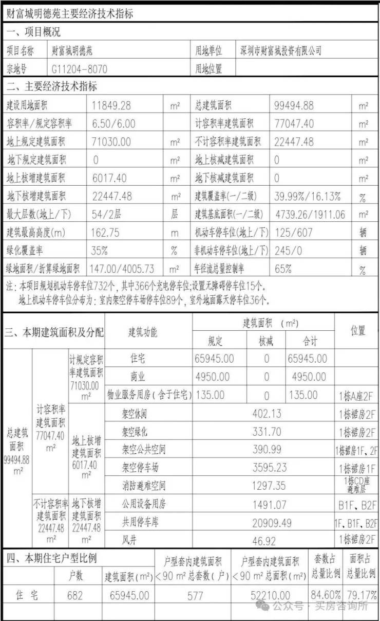财富城明德苑:占地面积约1.18万㎡,总建筑面积约9.95万㎡,计容建筑面积7.7万㎡,容积率6.5,绿化率35%,共由1栋4座住宅组成,其中1栋A/B座住宅32F,1栋C/D座住宅54F