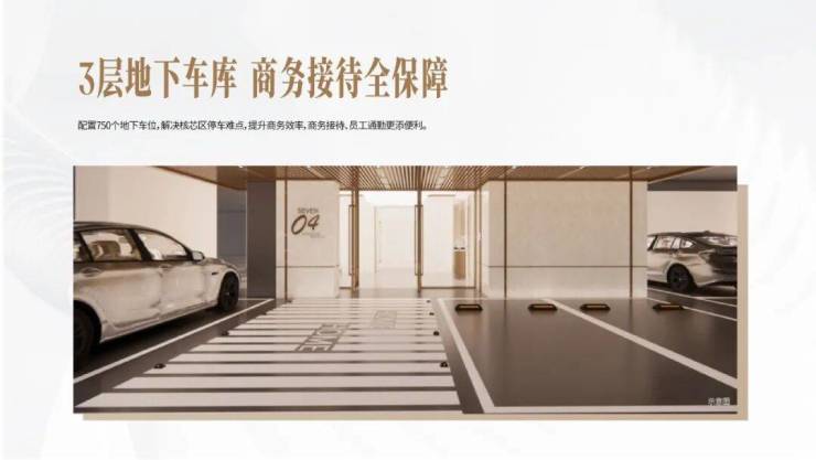 地下三层停车场,共750个车位,商务接待、员工通勤,均可无忧停车