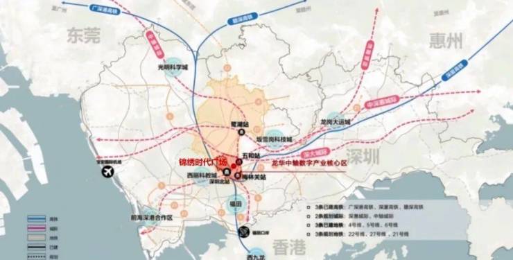 科创产业:北站商务核心区与坂田坂雪岗科技城双区交汇,集聚美团、深圳通、华为、富士康等龙头产业,形成超密集企业矩阵。