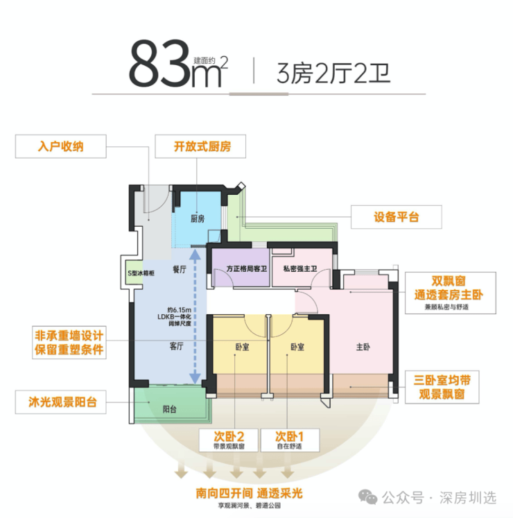 3个卧室开间西南或东南向,西南看园林、东南看观澜河碧道公园