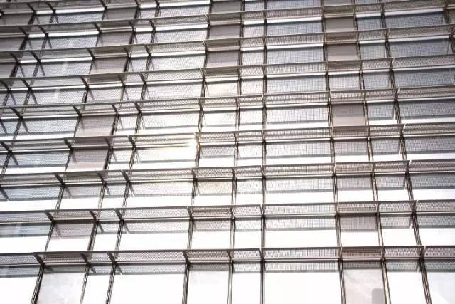 用遮阳板的穿孔和纹理排布,大大改善了室内的自然采光和观景条件。