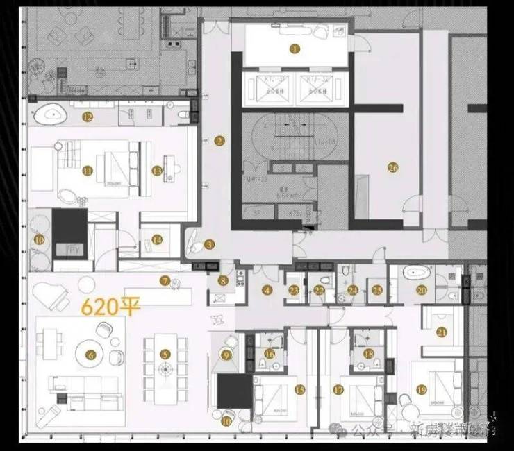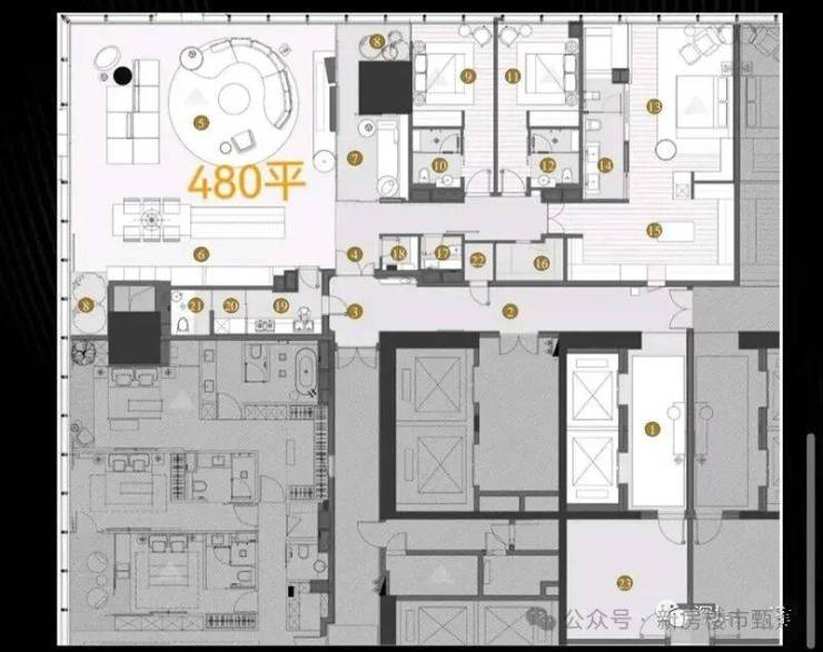 主力户型为340㎡、480㎡、620㎡,涵盖三房、3+1房、4+1房等多种户型。