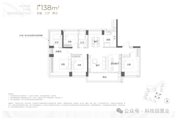 ⑥【一步到位性价比王牌 前海改善头等舱】4栋建面约138㎡奢阔山居范本:LDKB一体化,增配多功能厅、最大约15.5米南向四开间、约6m宽境阳台、主卧270°巨幕飘窗带独立卫浴及衣帽间、最高约94%拓展后综合使用率