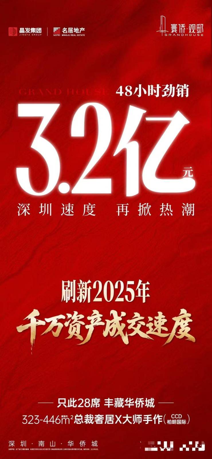 南山华侨城「寰侨观邸」推出28套323-446㎡大平层,现打67折,折后单价4.6-5.9万/㎡,送1.5万/㎡精装修。