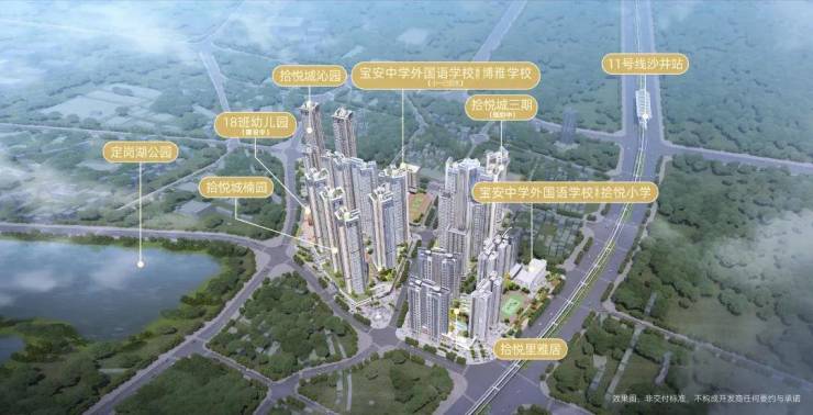 3、教育资源丰富:项目周边2公里内有5所学校,项目还规划了一所九年一贯制学校,是与宝中集团的合办学校。宝中作为深圳的八大名校之一,其合办的学校预计会有较高的教学质量,这将成为未来拾悦城二期溢价的优质资本。这对于有子女的家庭来说是一个非常大的吸引力。