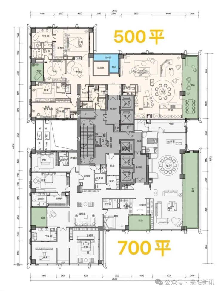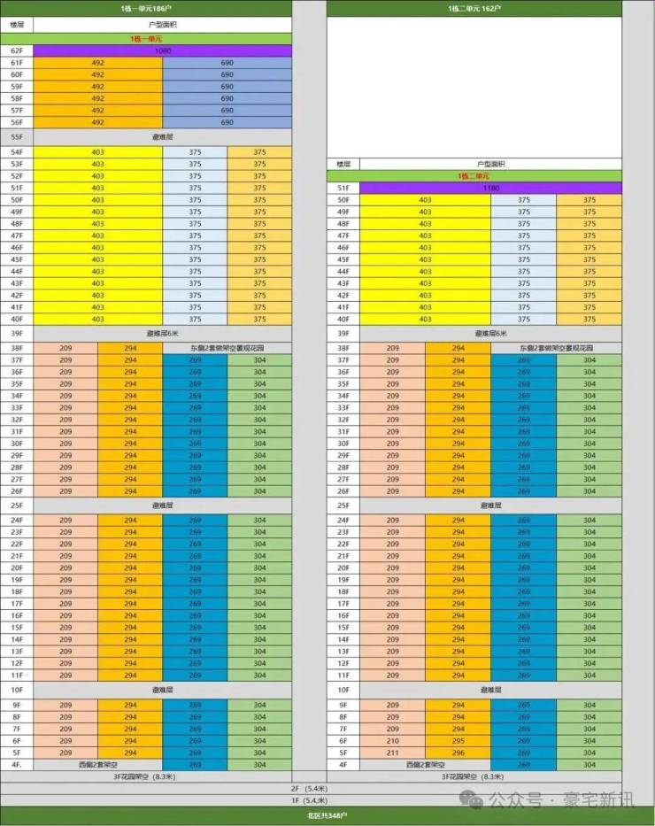 ③超高区58F起(200米以上)是约500-700㎡顶级大平层;