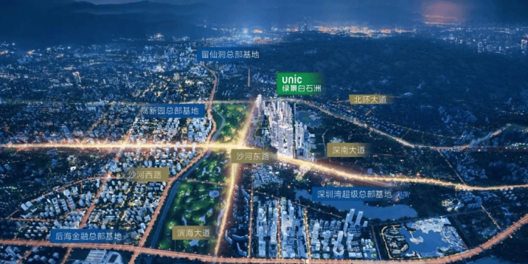 绿景白石洲位于深圳核心位置南山区的华侨城片区,深圳城市发展主轴——深南大道与大沙河创新走廊十字交汇点,依托华侨城人文艺术城区,链接后海总部基地、深圳湾超级总部基地、留仙洞总部基地、高新园总部基地四大总部基地。