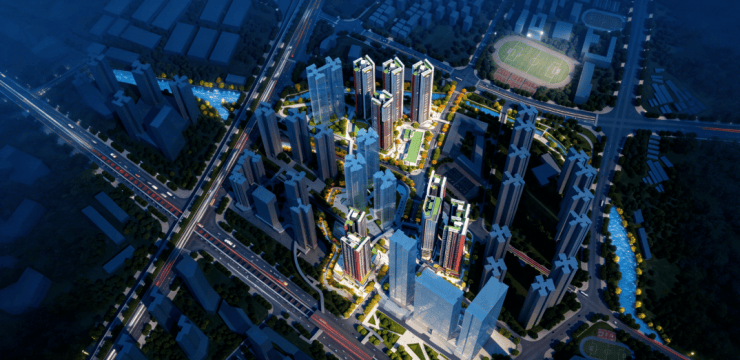 整个项目总建筑面积约90万㎡,分6个地块开发,是集高端住宅、保障房、大型商业、办公集群、学校、幼儿园于一体的全能生活大城。项目以"都会有机互联体"为导向,通过空中连廊慢行系统将全域业态无界串联,打造7×24小时全周期国际生活创享体系。