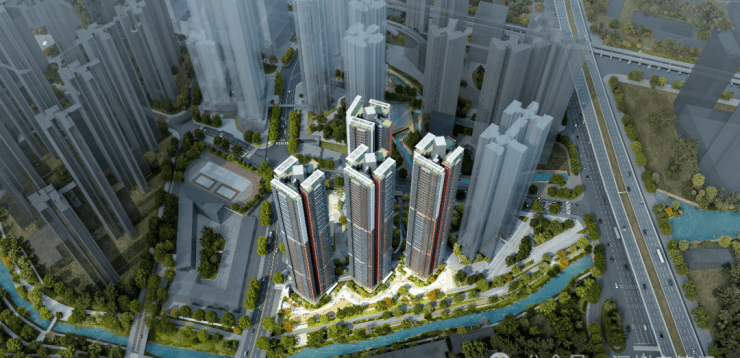 首期推出的05地块,是整个项目中位置最好的住宅组团。占地面积约1.91万㎡,总建筑面积约17.93万㎡,由4栋45-49层超高层住宅组成,共1142户,全部是纯商品房,没有回迁房和保障房混居,圈层比较纯粹。