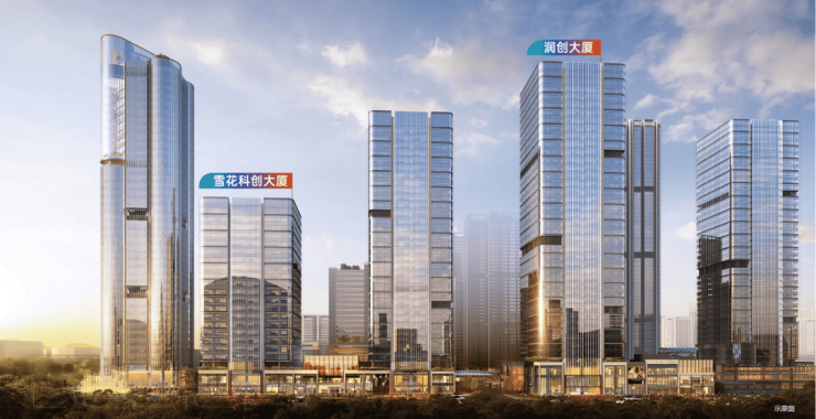 产业配套:雪花科创城,融合总部办公、研发中试、高端智造、科技体验等产业功能,以创新为驱动,形成以信息技术、智能制造、时尚消费等为主导的创新产业生态圈。