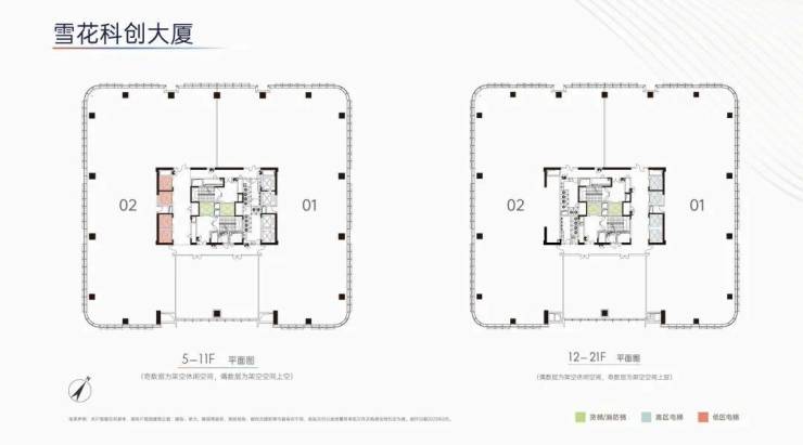 楼高/层高:雪花科创大厦楼高21F,标准层层高约4.5m,润创大厦楼高40F,标准层层高约4.2-4.5m,约4.2-4.5m层高,约12m挑高大堂,跃升企业形象