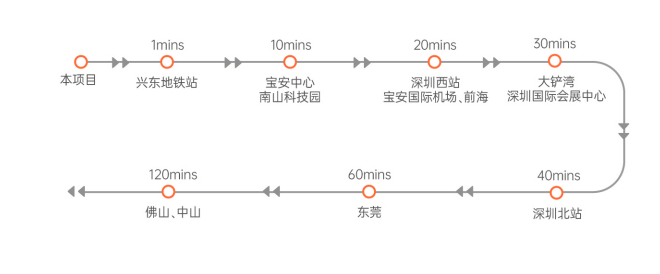 【六位一体交通 链接企业发展资源】 六位一体交通网络,全维产业发展资源。雪花科创城屹立于宝安尖岗山,无缝接驳5号地铁线兴东站,1站到留仙洞,4站到宝中,6站到深圳北;瞬连多条快速,10分钟到达南山科技园,20分钟到达宝安机场。