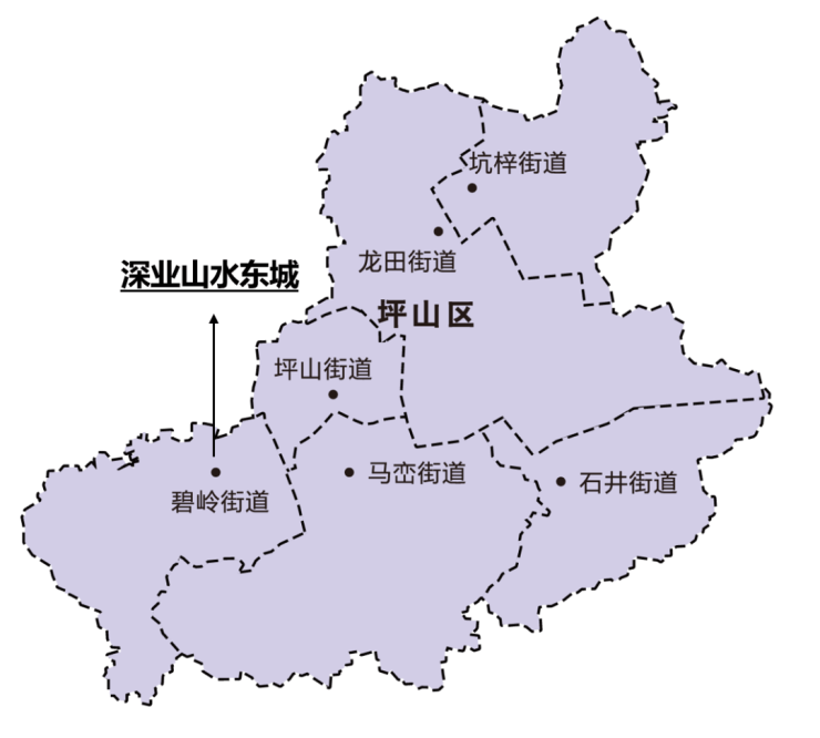 深业山水东城位于坪山区碧岭街道锦龙大道和振碧路交汇处西南角,项目占地面积约6.7万平,总建筑面积约44.9万平,容积率4.75,绿化率35%,规划总户数2867户,其中商品房2420户,公共租赁住房167户,安居商品房280户;