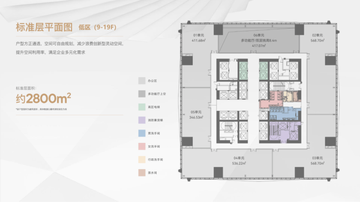 ◎办公区独立使用26部通力高速电梯,平均候梯时间≤30s