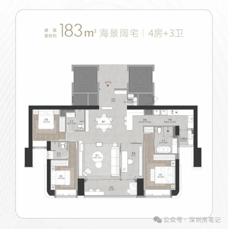 位于福田核心地段,毗邻深圳湾与红树林湿地,区域抗跌性强。双地铁1站直达香蜜湖金融中心与河套深港合作区。自带15万㎡商业、红岭校区、嘉佩乐酒店。户型111-270㎡3-5房,层高3.3-3.5米,精装交付,使用率达77%。