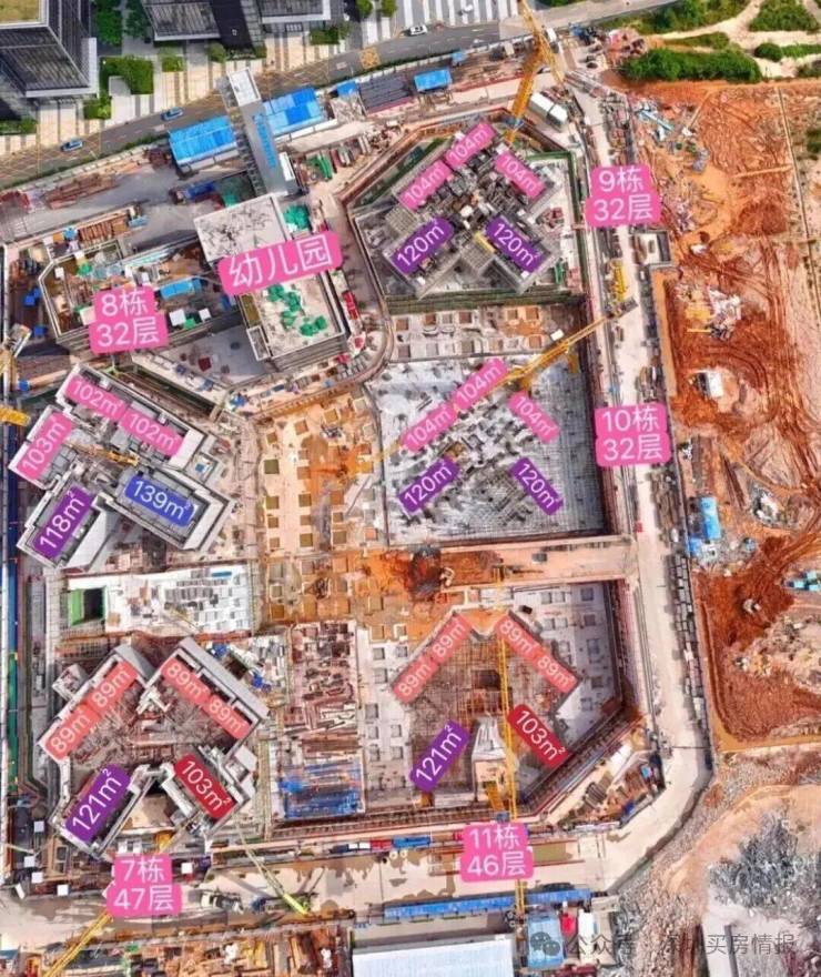 最新平面图把原来的8-9-10栋2梯6户改为了2梯5户设计,原11栋47层高改为了46层高,从本次公布的东区平面图再参照了一下西区的平面图可以看出户型结构是一样的,但是本次西区都是中大户型为主,没有81㎡小户型了,主要是以89-103-104-118-120-121-139㎡为主!