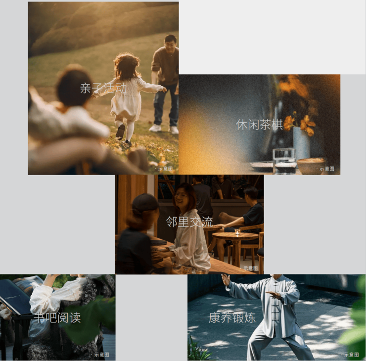 瑧悦通过架空层花园平台、主题Home-bar、对外活动空间三重体系,打造了约2600㎡的公共空间,包含健身房、亲子乐园、书吧、茶棋室等设施,能满足全龄段休闲需求。