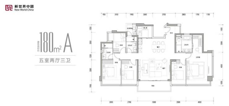 建面约180㎡5房,洄游式居家动线,5开间朝南、采光面高达约18.6m,约1.8x5.5m巨幕阔景阳台,双套间,主卧享270°景观视野。