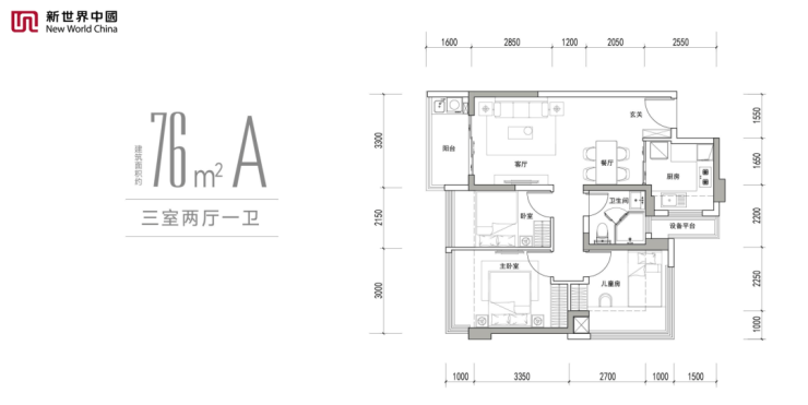 建面约76㎡3房,格局方正、动静分区,LDKB一体化设计,既保证了公区的完整性、又合理利用了空间。
