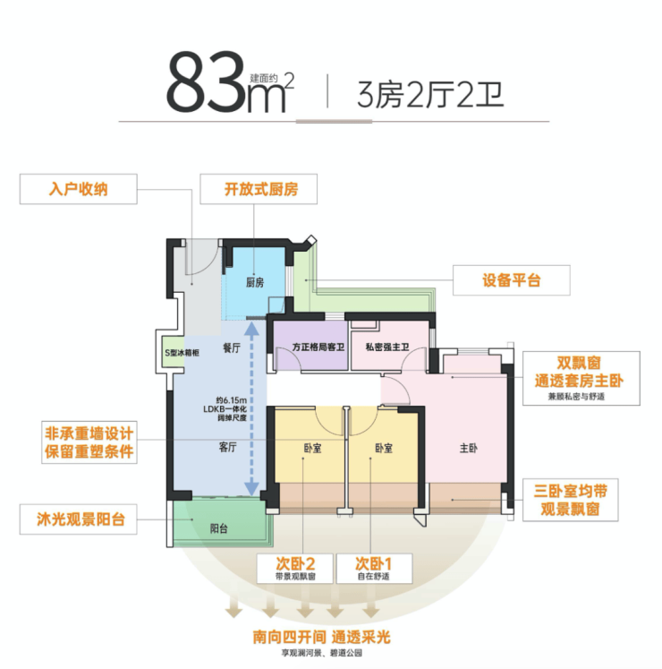 1.全明户型,视野开阔