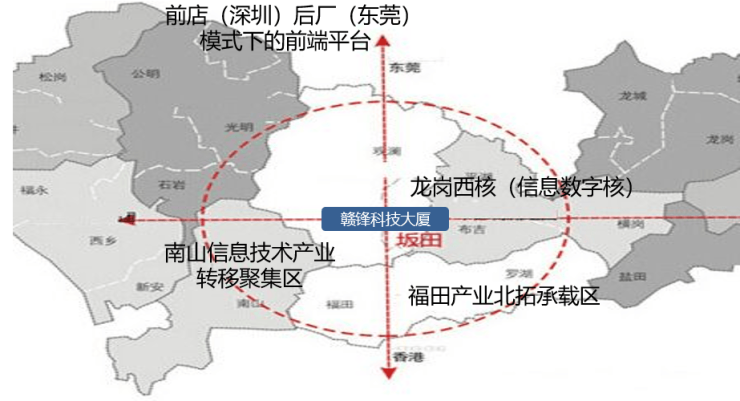 深圳龙岗赣锋科技大厦招租电话:400-088-3336【写字楼招商中心】⫸【坂雪岗科技城,与华为总部为邻】将重点打造承载万亿级世界级电子信息产业集群的核心区,在坂雪岗科技城“一核四翼”的规划中,赣锋科技大厦位于以华为总部为核心的“一核”区域,享华为辐射与产业集群红利