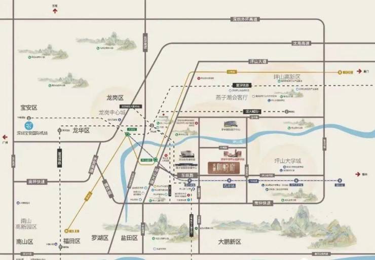 约1.2KM到燕子湖国际会展中心,约6KM内到坪山体育中心,紧邻约10万㎡的六馆一城、深圳自然博物馆等环绕,媲美福田市民中心。