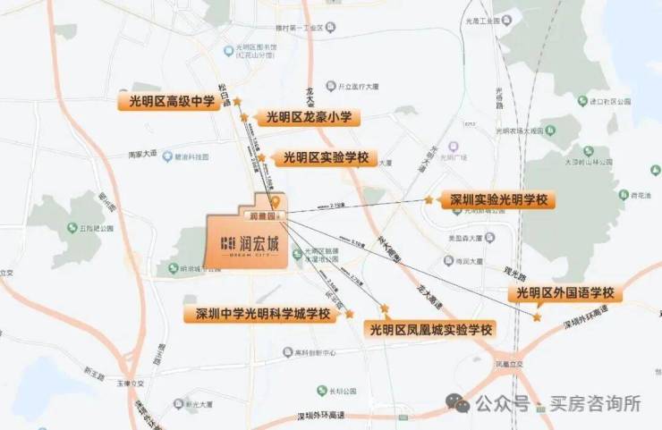 润宏城周边3公里范围内汇聚了深圳市光明区实验学校、深圳小学光明曙光学校、深圳市光明区凤凰城实验学校等众多的优质教育配套。