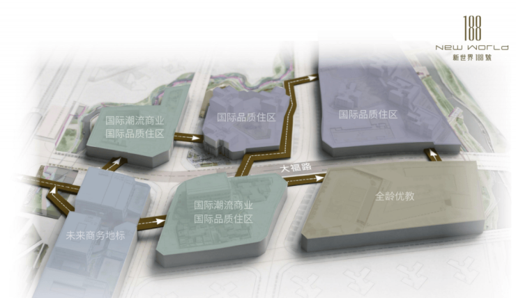 从商业看,新世界188號参考日本涩谷,规划以探索式、立体式、多层次布局,打造约6万㎡步入式商业街区“全福里”。