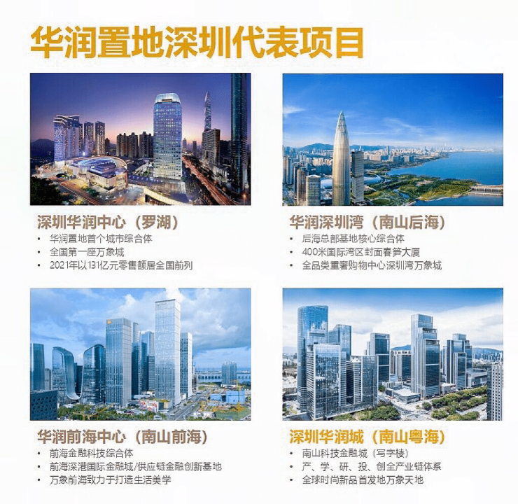目前华润城已有百余家头部企业进驻,引进企业包含7家世界500强、21家上市公司、总市值超13万亿,项目总产值450亿、贡献了30%的区金融产值,2021年已荣获深圳市投资推广重点园区。