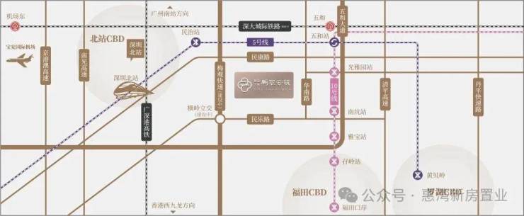 距10号线南坑站C出口约600米,2站福田,4站深圳北站,5站岗厦北,紧邻深圳北站、五和交通枢纽两大交通枢纽,高效通勤湾区。
