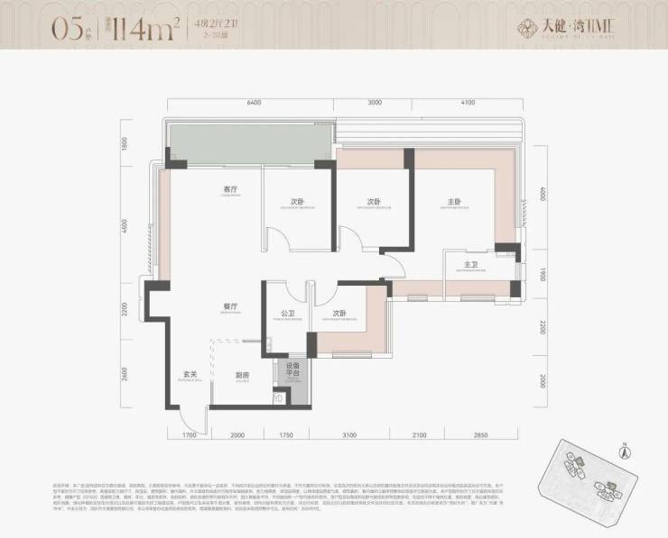 115㎡4房2卫:大横厅户型,朝南看海,使用率很高,但三个次卧朝北