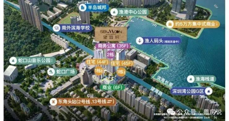 招商望海玥位于深圳市南山区蛇口新街与渔村路交汇处、距离地铁2/8号线东角头站267米;推出的是389套公寓产品、36--60平一至二房.