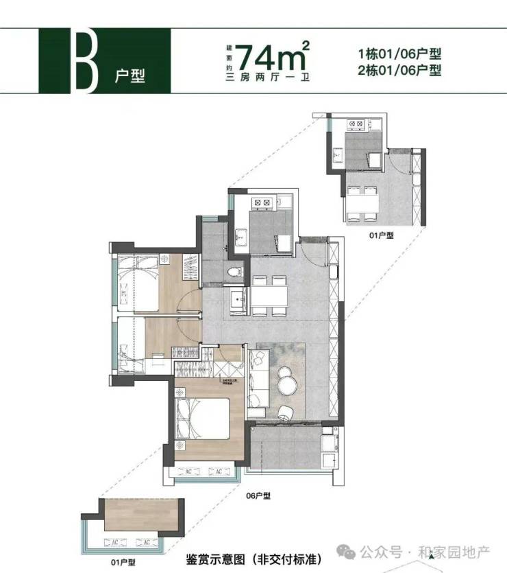 卓越空间设计,打造科学尺寸空间原万科团队精心雕琢,打造建面约74-77㎡三房住宅一步到位买三房,不再发愁换房