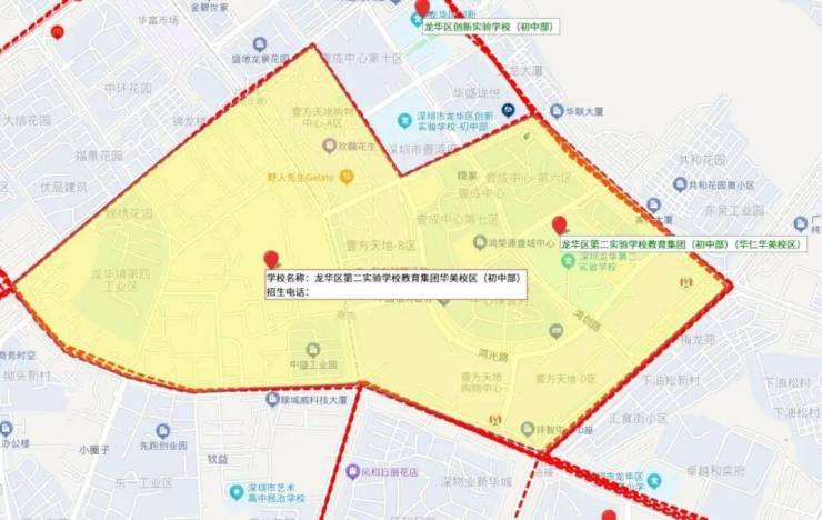 初中学区划分:深圳艺术高中民治学校初中部、龙腾学校北辰校区、龙华高级中学教育集团民治校区初中部、格致中学民治校区初中部、红山中学初中部,还有龙华实验学校初中部的大学区划分。