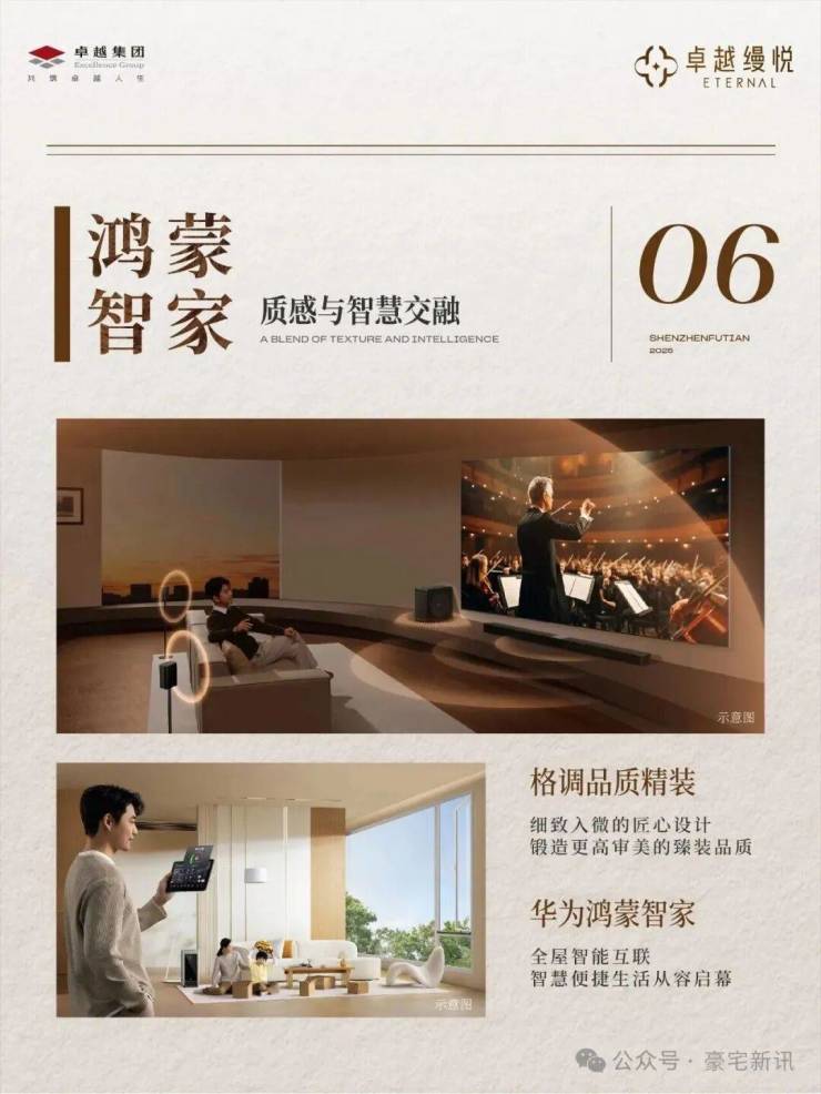 搭载华为鸿蒙智能主机为中央控制系统,以PLC和全屋高速Wi-Fi为稳定可靠的连接底座,通过语音、中控家族、智慧生活APP等交互方式智控全屋,在缦悦拥享便捷缦生活。