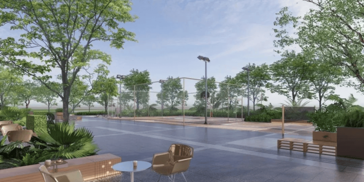 【抬高式檐上浮岛花园露台】:约1000㎡,位于商业街区顶层,业主私享花园露台,提供丰富空间活动区域,是邻里交流娱乐的理想场所。