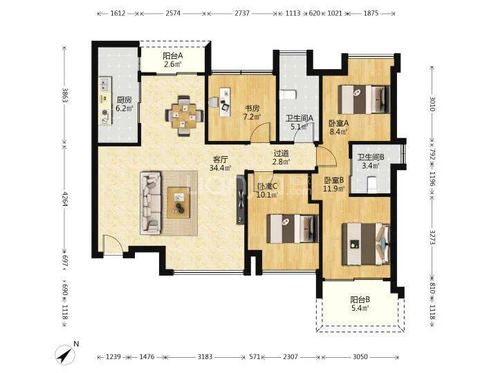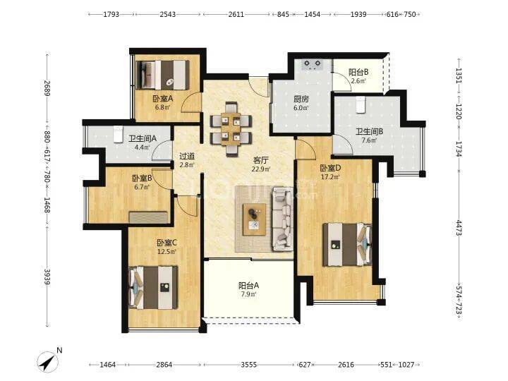 小区:前海东岸·127㎡·南北通透4房2卫;