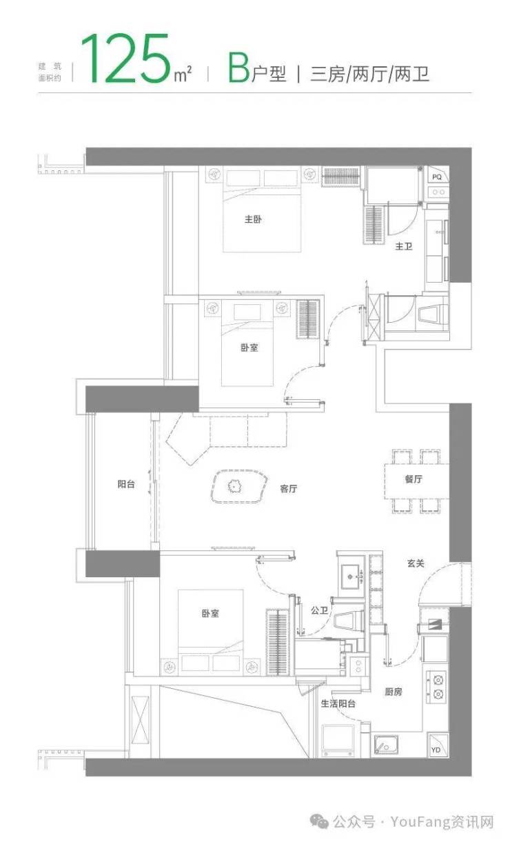 建筑面积约125㎡B户型