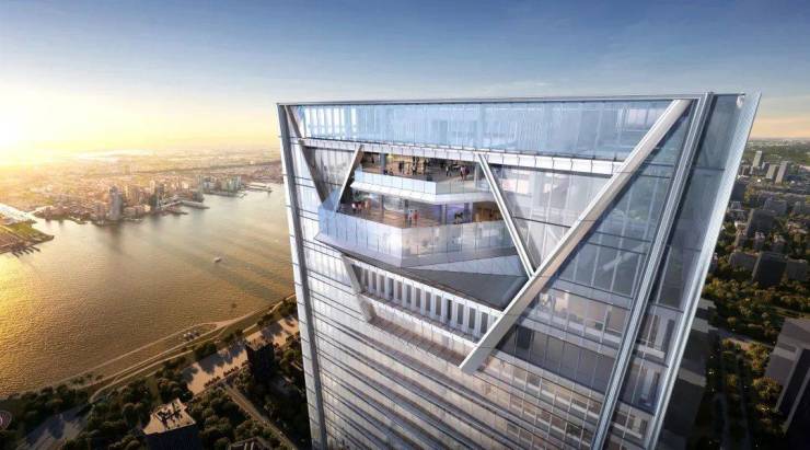 位于80层的220㎡悬空观景台(高350米),采用灰镜玻璃设计,可360°俯瞰深圳城市天际线、香港元朗及高尔夫绿地,已成网红打卡点