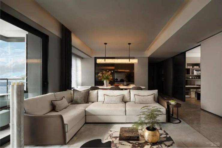 样板间呈现的是现代轻奢风格,硬装用料扎实,收纳设计也比较贴心。