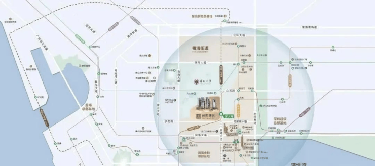 翰熙典居占位深圳经济命脉滨海大道与南北科创主轴南海大道交汇处十字轴心。集萃城市区位、科创、人文、TOD四大中心源点。依托两大科技园、四大总部基地,集总部经济+全球科创中心价值,坐享区域发展利好。