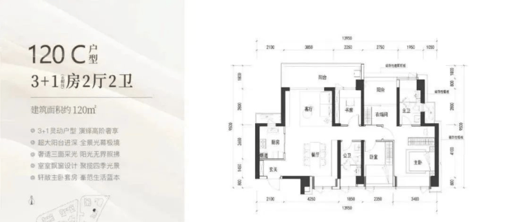 120㎡有B户型传统竖厅以及C户型南北通