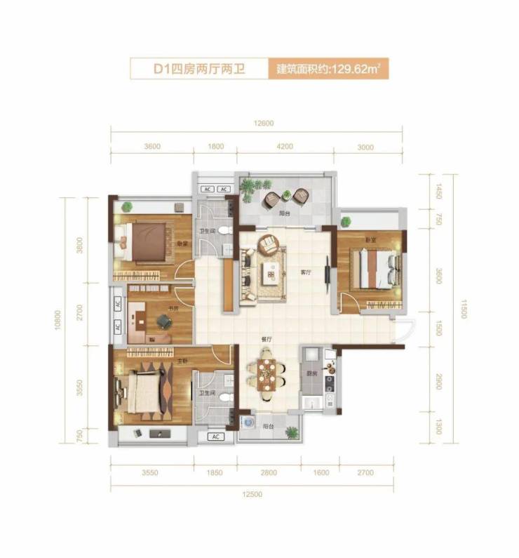 D1户型:129㎡4房2厅2卫