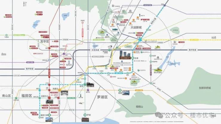 🚇 3号线:项目直连地铁3号线永湖站,两站即达大运,8站直达罗湖;
